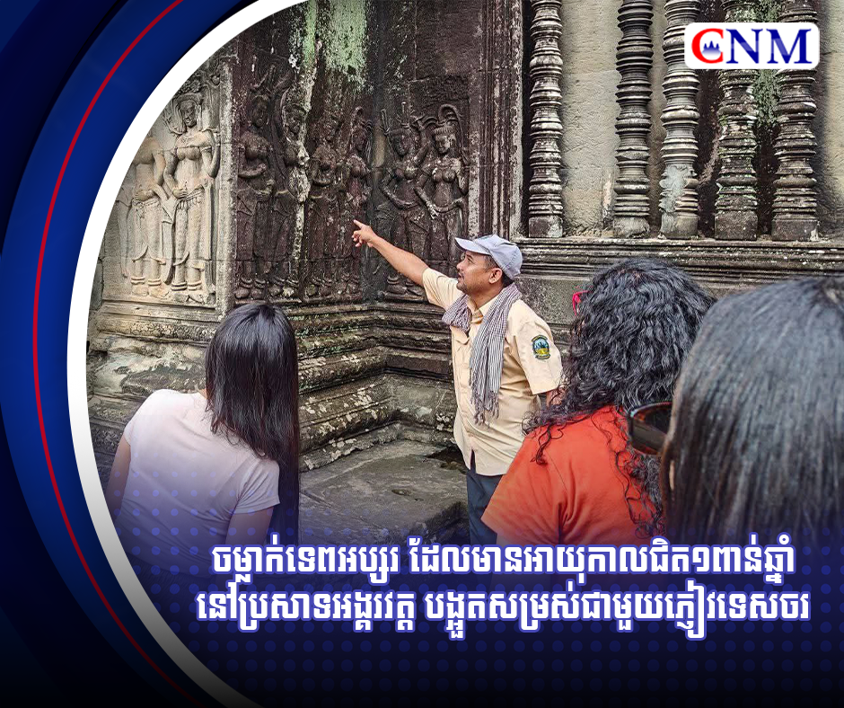 ចម្លាក់ទេពអប្សរ ដែលមានអាយុកាលជិត១ពាន់ឆ្នាំ នៅប្រសាទអង្គរវត្ត បង្អួតសម្រស់ជាមួយភ្ញៀវទេសចរ