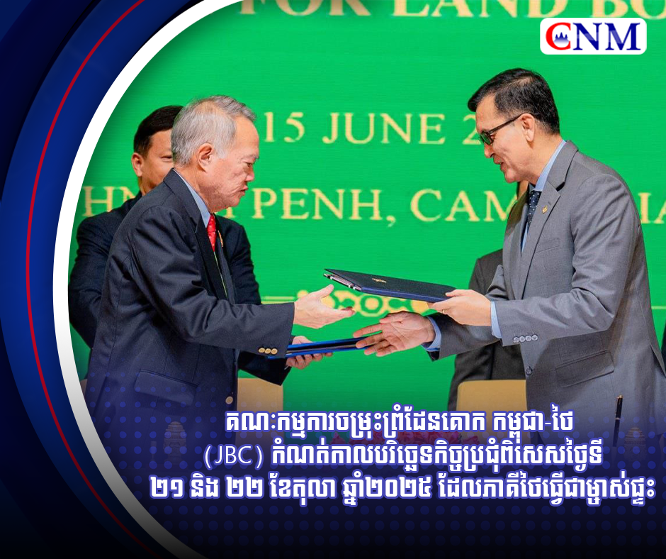 គណៈកម្មការចម្រុះព្រំដែនគោក កម្ពុជា-ថៃ (JBC) កំណត់កាលបរិច្ឆេទកិច្ចប្រជុំពិសេសថ្ងៃទី២១ និង ២២ ខែតុលា ឆ្នាំ២០២៥ ដែលភាគីថៃធ្វើជាម្ចាស់ផ្ទះ