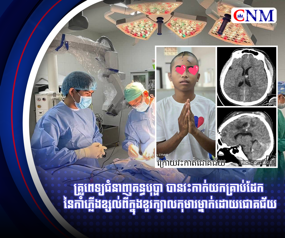 គ្រូពេទ្យជំនាញគន្ធបុប្ផា បានវះកាត់យកគ្រាប់ដែក នៃកាំភ្លើងខ្សល់ពីក្នុងខួរក្បាលកុមារម្នាក់ដោយជោគជ័យ