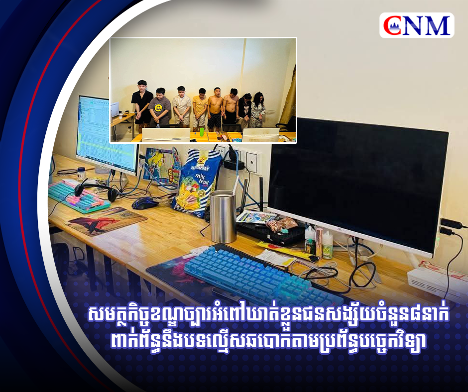 សមត្ថកិច្ចខណ្ឌច្បារអំពៅឃាត់ខ្លួនជនសង្ស័យចំនួន៨នាក់ពាក់ព័ន្ធនឹងបទល្មើសឆបោកតាមប្រព័ន្ធបច្ចេកវិទ្យា