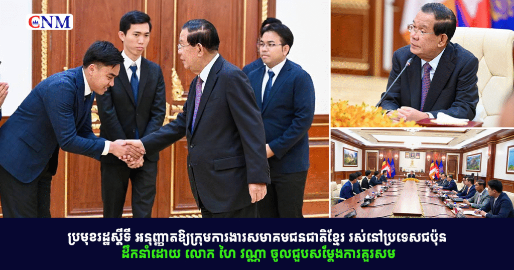 ប្រមុខរដ្ឋស្តីទី អនុញ្ញាតឱ្យក្រុមការងារសមាគមជនជាតិខ្មែរ រស់នៅប្រទេសជប៉ុន ដឹកនាំដោយ លោក ហៃ វណ្ណា ចូលជួបសម្តែងការគួរសម