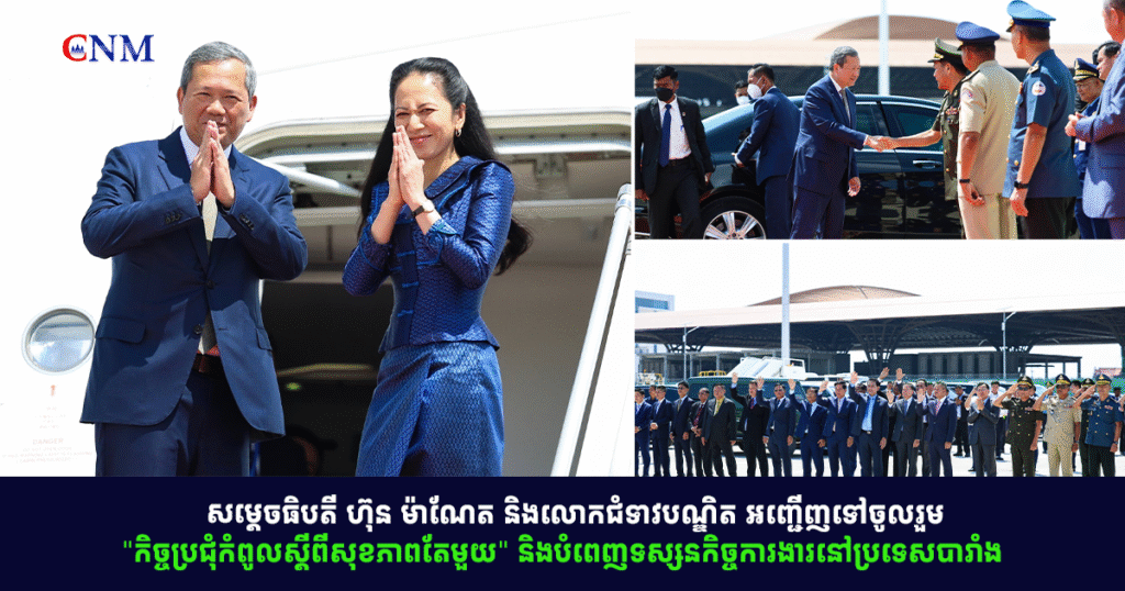 សម្តេចធិបតី ហ៊ុន ម៉ាណែត និងលោកជំទាវបណ្ឌិត អញ្ជើញទៅចូលរួម “កិច្ចប្រជុំកំពូលស្តីពីសុខភាពតែមួយ” និងបំពេញទស្សនកិច្ចការងារនៅប្រទេសបារាំង