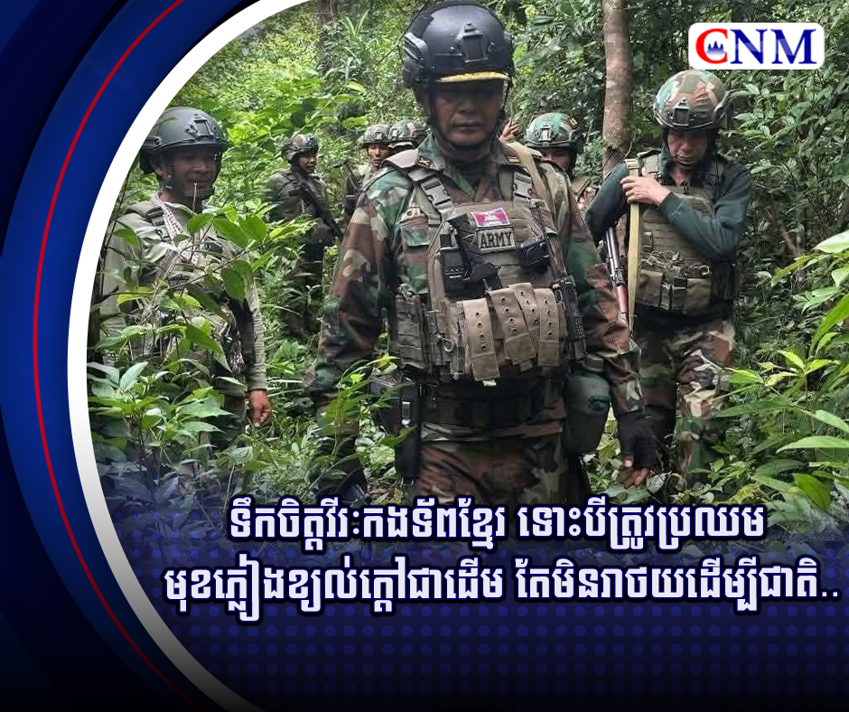 ទឹកចិត្តវីរៈកងទ័ពខ្មែរ ទោះបីត្រូវប្រឈម មុខភ្លៀងខ្យល់ក្តៅជាដើម តែមិនរាថយដើម្បីជាតិ