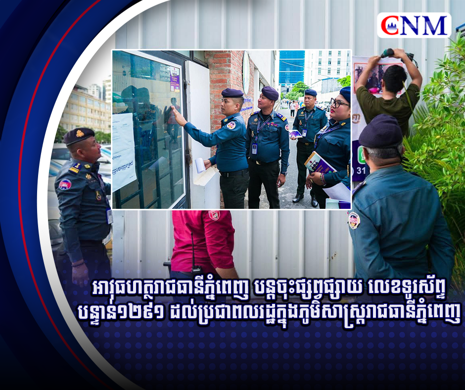 អាវុធហត្ថរាជធានីភ្នំពេញ បន្តចុះផ្សព្វផ្សាយ លេខទូរស័ព្ទបន្ទាន់១២៩១ ដល់ប្រជាពលរដ្ឋក្នុងភូមិសាស្រ្តរាជធានីភ្នំពេញ