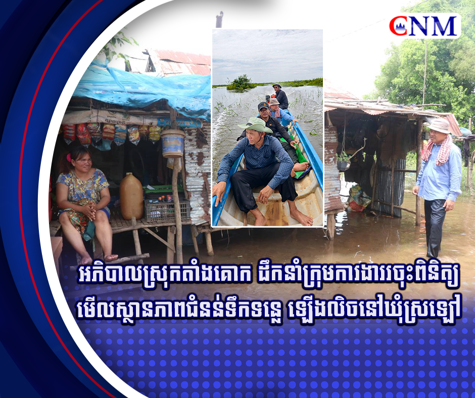 អភិបាលស្រុកតាំងគោក ដឹកនាំក្រុមការងាររចុះពិនិត្យមើលស្ថានភាពជំនន់ទឹកទន្លេ ឡើងលិចនៅឃុំស្រឡៅ