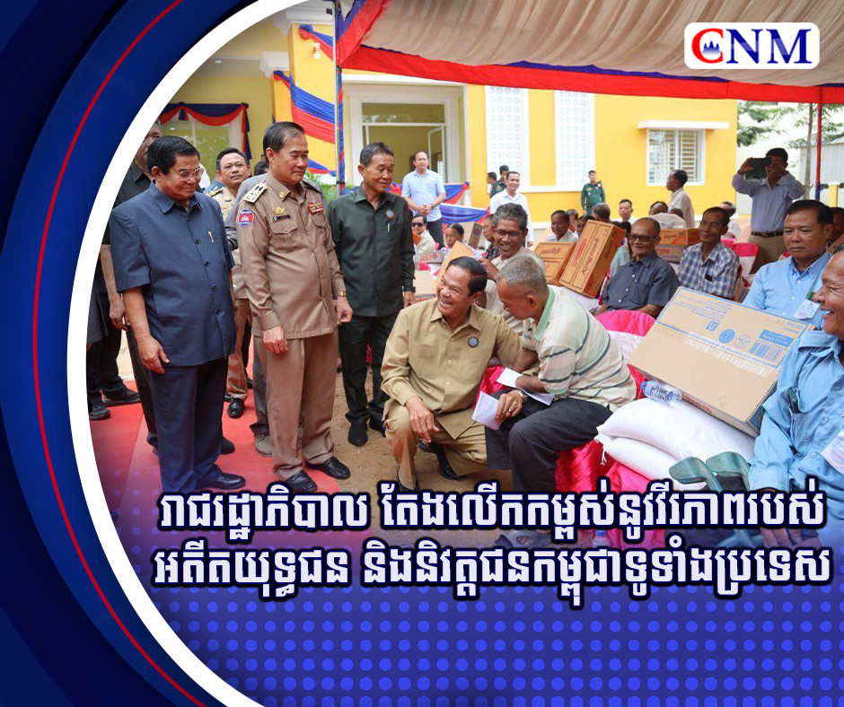 រាជរដ្ឋាភិបាលក្រោមការដឹកនាំដ៏ឈ្លាសវៃប្រកបដោយគតិបណ្ឌិតដ៏ខ្ពង់ខ្ពស់របស់សម្ដេចមហាបវរធិបតី ហ៊ុន ម៉ាណែត នាយករដ្ឋមន្រ្តី តែងគិតគូរផ្ដល់ដី ផ្ទះ ប្រាក់សោធននិវត្តន៍ និងរបបគាំពារសង្គមផ្សេងៗ ជូនអតីត យុទ្ធជន...