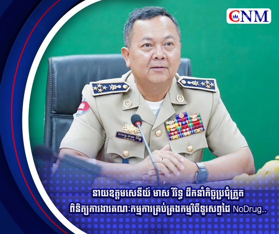 នាយឧត្តមសេនីយ៍ មាស វិរិទ្ធដឹកនាំកិច្ចប្រជុំត្រួតពិនិត្យការងារគណៈកម្មការគ្រប់គ្រងកម្មវិធីទូរសព្ទដៃ NoDrug