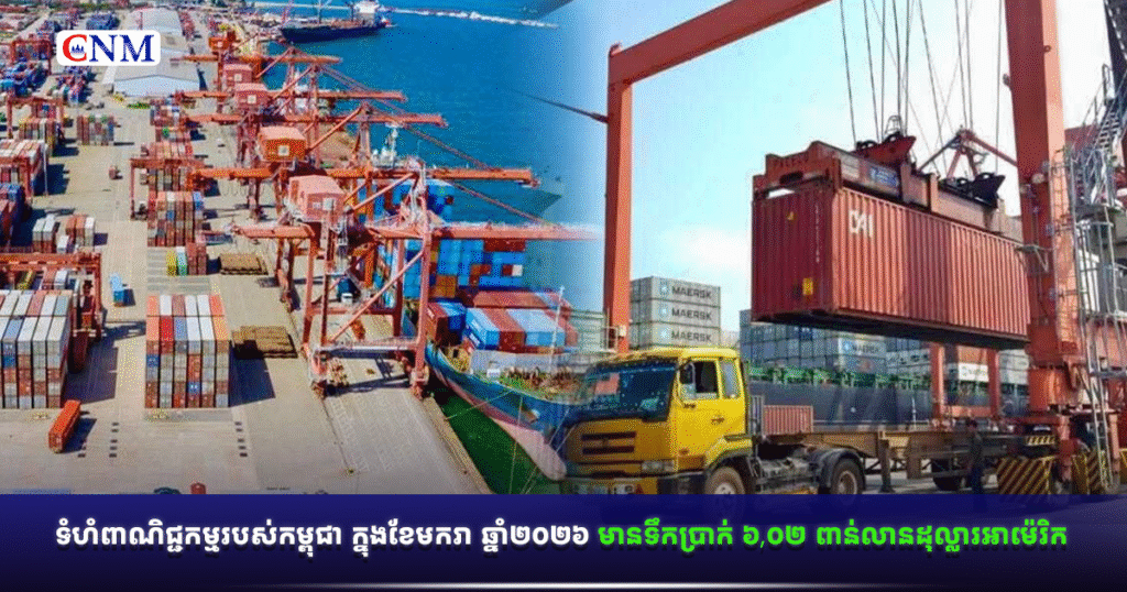 ទំហំពាណិជ្ជកម្មរបស់កម្ពុជា ក្នុងខែមករា ឆ្នាំ២០២៦ មានទឹកប្រាក់ ៦,០២ ពាន់លានដុល្លារអាម៉េរិក