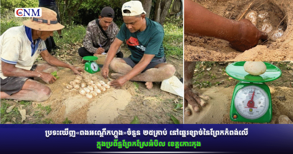 ប្រទះឃើញ«ពងអណ្តើកហ្លួង»ចំនួន ២៥គ្រាប់ នៅឆ្នេរខ្សាច់នៃព្រែកកំពង់លើ ក្នុងប្រព័ន្ធព្រែកស្រែអំបិល ខេត្តកោះកុង