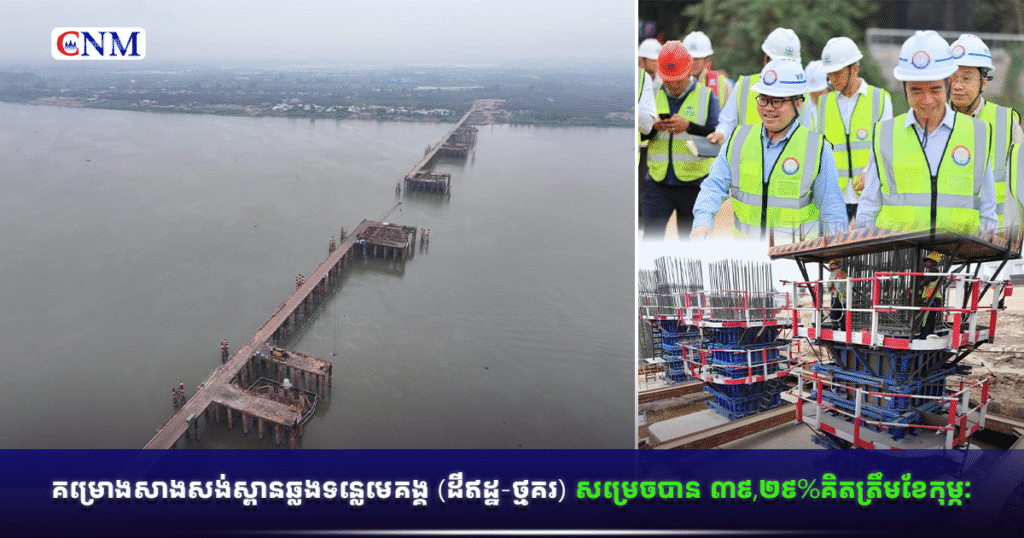 គម្រោងសាងសង់ស្ពានឆ្លងទន្លេមេគង្គ (ដីឥដ្ឋ-ថ្មគរ) សម្រេចបាន ៣៩,២៩%គិតត្រឹមខែកុម្ភៈ