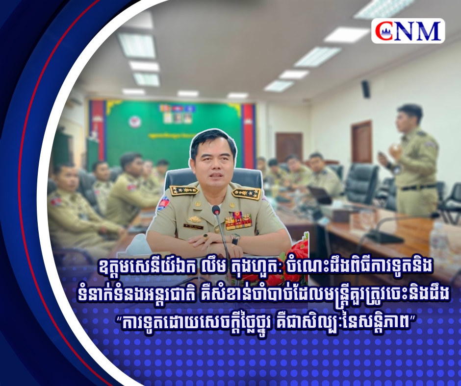 ឧត្តមសេនីយ៍ឯក លឹម តុងហួត: ចំណេះដឹងពិធីការទូតនិងទំនាក់ទំនងអន្តរជាតិ គឺសំខាន់ចាំបាច់ដែលមន្ត្រីគួរត្រូវចេះនិងដឹង “ការទូតដោយសេចក្តីថ្លៃថ្នូរ គឺជាសិល្បៈនៃសន្តិភាព”