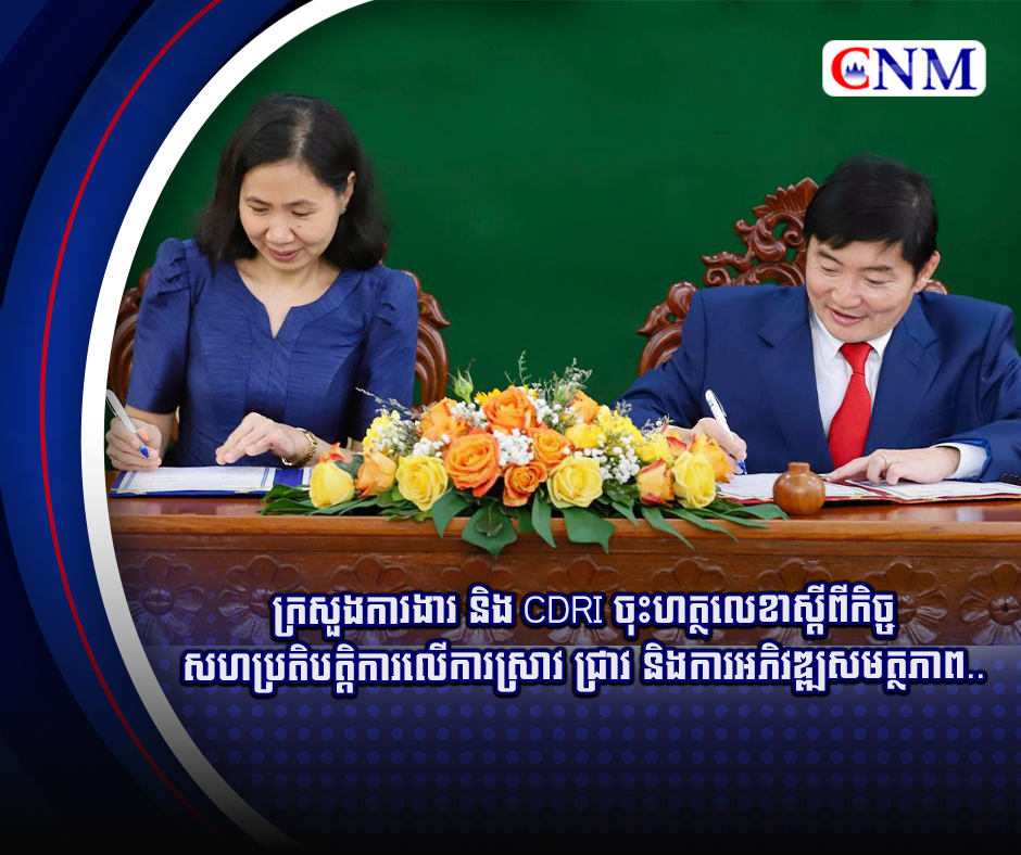 ក្រសួងការងារ និង CDRI ចុះហត្ថលេខាស្តីពីកិច្ចសហប្រតិបត្តិការលើការស្រាវ ជ្រាវ និងការអភិវឌ្ឍសមត្ថភាព