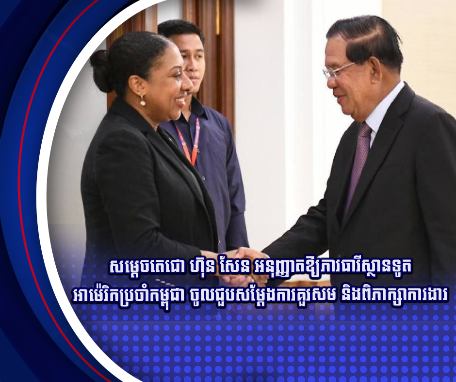 សម្ដេចតេជោ ហ៊ុន សែន អនុញ្ញាតឱ្យភារធារីស្ថានទូតអាម៉េរិកប្រចាំកម្ពុជា ចូលជួបសម្តែងការគួរសម និងពិភាក្សាការងារ
