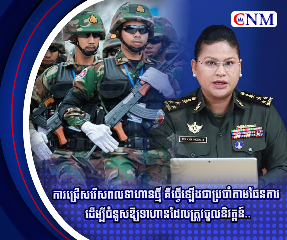 លោកស្រី ឧត្តមសេនីយ៍ឯក ម៉ាលី សុជាតា អ្នកនាំពាក្យក្រសួងការពារជាតិតាមរយៈសារព័ត៌មានកម្ពុជាថ្មីនារសៀល ថ្ងៃពុធនេះ បានឆ្លើយតបទៅចំពោះបញ្ហាគណៈកម្មការជ្រើសរើសយុវជនស្ម័គ្រចិត្ត ចូលបម្រើកងយោធពលខេមរភូមិន្ទ នៅថ្ងៃទី២៧ ខែសីហា...