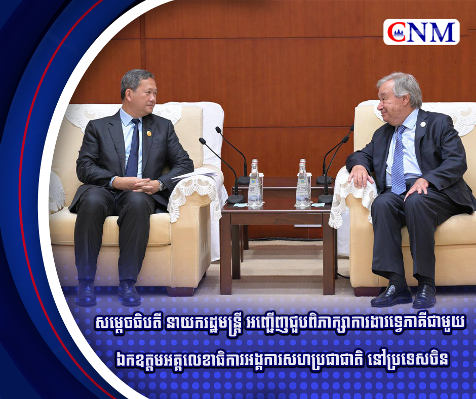 សម្តេចធិបតី នាយករដ្ឋមន្ត្រី អញ្ជើញជួបពិភាក្សាការងារទ្វេភាគីជាមួយ ឯកឧត្តមអគ្គលេខាធិការអង្គការសហប្រជាជាតិ នៅប្រទេសចិន