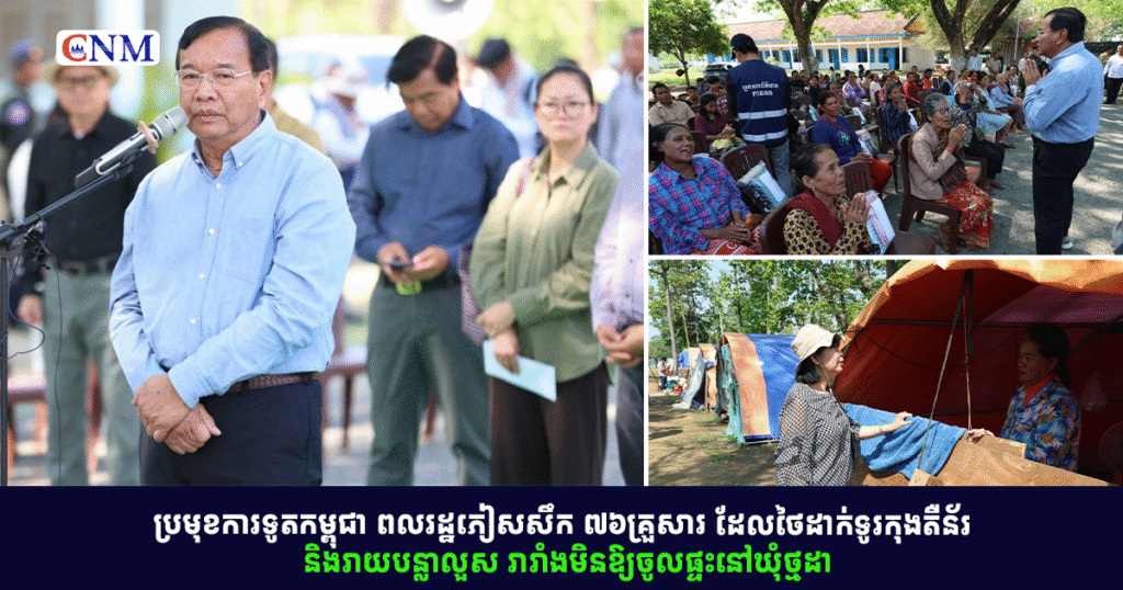 ប្រមុខការទូតកម្ពុជា ពលរដ្ឋភៀសសឹក ៧៦គ្រួសារ ដែលថៃដាក់ទូរកុងតឺន័រ និងរាយបន្លាលួស រារាំងមិនឱ្យចូលផ្ទះនៅឃុំថ្មដា