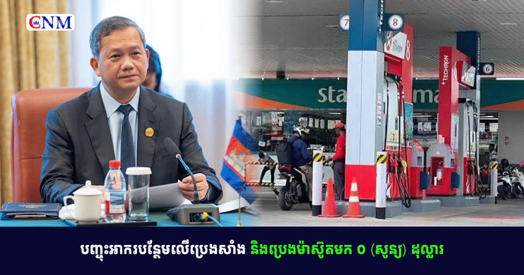 បញ្ចុះអាករបន្ថែមលេីប្រេងសាំង និងប្រេងម៉ាស៊ូតមក ០ (សូន្យ) ដុល្លារ