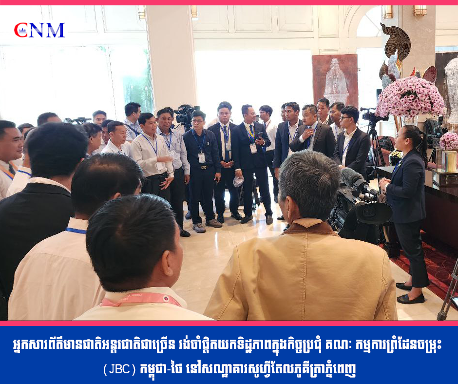 អ្នកសារព័ត៌មានជាតិអន្តរជាតិជាច្រើន រង់ចាំផ្ដិតយកទិដ្ឋភាពក្នុងកិច្ចប្រជុំ គណៈ កម្មការព្រំដែនចម្រុះ (JBC) កម្ពុជា-ថៃ នៅសណ្ឋាគារសូហ្វីតែលភូគីត្រាភ្នំពេញ