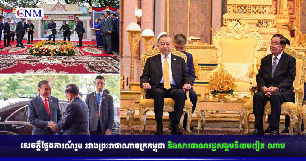 សេចក្តីថ្លែងការណ៍រួម រវាងព្រះរាជាណាចក្រកម្ពុជា និងសារធាណរដ្ឋសង្គមនិយមវៀត ណាម ក្នុងឱកាសដំណើរទស្សនកិច្ចផ្លូវរដ្ឋរបស់ឯកឧត្តម តូ ឡឹម អគ្គលេខាធិការនៃគណៈ កម្មាធិការមជ្ឈិមបក្សកុម្មុយនីស្តវៀតណាម នៅកម្ពុជា...