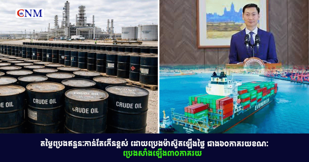 តម្លៃប្រេងនៅកម្ពុជាបានឈានដល់ស្ថានភាពតានតឹងមួយ ដោយប្រេងសាំងឡើងថ្លៃជាង ៣០ភាគរយ និងប្រេងម៉ាស៊ូតឡើងថ្លៃជាង ៦០ភាគរយ។ រដ្ឋមន្ត្រីក្រសួងថាមពល លោក កែវ រតនៈ បានបញ្ជាក់ថា...