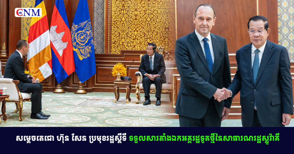 សម្តេចតេជោ ហ៊ុន សែន ប្រមុខរដ្ឋស្តីទី ទទួលសារតាំងឯកអគ្គរដ្ឋទូតថ្មីនៃសាធារណរដ្ឋស្លូវ៉ាគី