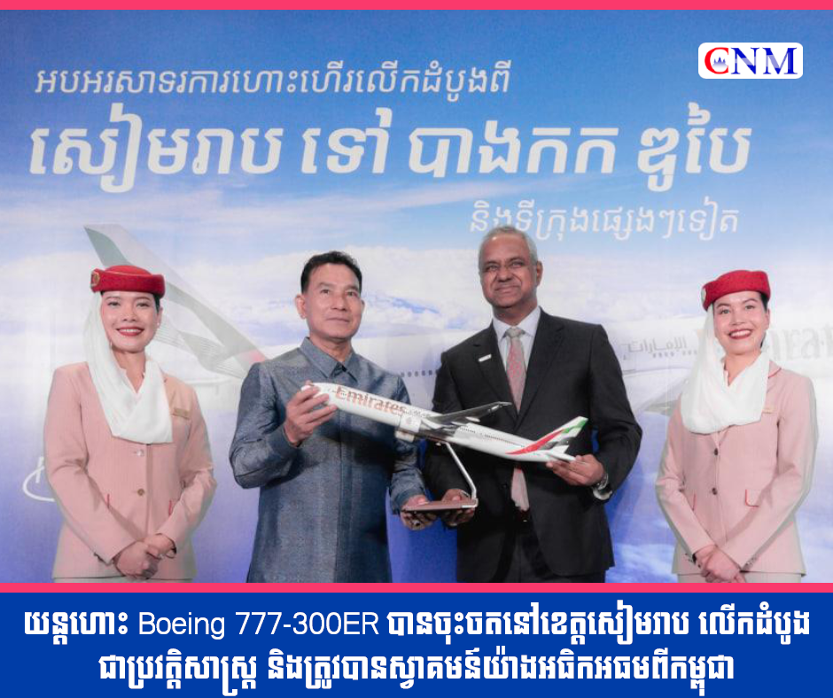 Emirates ដែលជាក្រុមហ៊ុនអាកាសចរណ៍លំដាប់អន្តរជាតិធំជាងគេលើពិភពលោក បានអបអរសាទរសមិទ្ធិផលដ៏គួរឱ្យកត់សម្គាល់មួយទៀតនៅប្រទេសកម្ពុជា ខណៈដែលជើងហោះហើរដំបូងរបស់ខ្លួន បានចុះចតជាផ្លូវការនៅខេត្តសៀមរាប នៅយប់ថ្ងៃអង្គារថ្ងៃទី៣ ខែមិថុនា ឆ្នាំ២០២៥។ ជើងហោះហើរដំបូងនេះ ត្រូវបានស្វាគមន៍ដោយការបាញ់ទឹកប្រោសព្រំ...