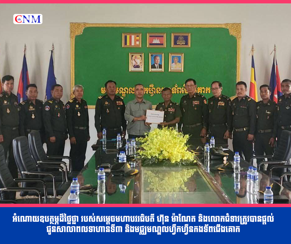 អំណោយឧបត្ថម្ភដ៏ថ្លៃថ្លា របស់សម្តេចមហាបវរធិបតី ហ៊ុន ម៉ាណែត និងលោកជំទាវត្រូវបានផ្តល់ ជូនសាលាពលទាហានទី៣ និងមជ្ឈមណ្ឌលហ្វឹកហ្វឺនកងទ័ពជើងគោក