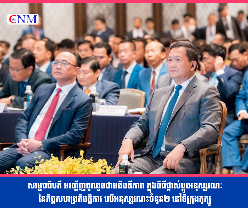 សម្តេចធិបតី អញ្ចើញចូលរួមជាអធិបតីភាព ក្នុងពិធីផ្លាស់ប្តូរអនុស្សរណៈនៃកិច្ចសហប្រតិបត្តិការ លើអនុស្សរណះចំនួន២ នៅទីក្រុងតូក្យូ