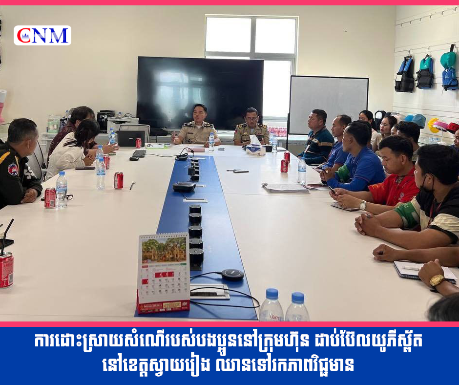 និងឈានទៅធ្វើការដូចប្រក្រតីវិញក្រោមការសម្របសម្រួលរបស់ក្រសួងការងារ ក្រោមការយកចិត្តទុកដាក់របស់ក្រសួងការងារ និងបណ្ដុះបណ្ដាលវិជ្ជាជីវៈ មន្ទីរក.ប. ស្វាយរៀង និងអ្នកជំនាញជំនាញតាំងពីព្រឹកមិញនេះ បានចុះទៅដោះស្រាយ និងសម្របសម្រួលសំណើ របស់បងប្អូនកម្មករនិយោជិត និងភាគីពាក់ព័ន្ធនៅក្រុមហ៊ុន...