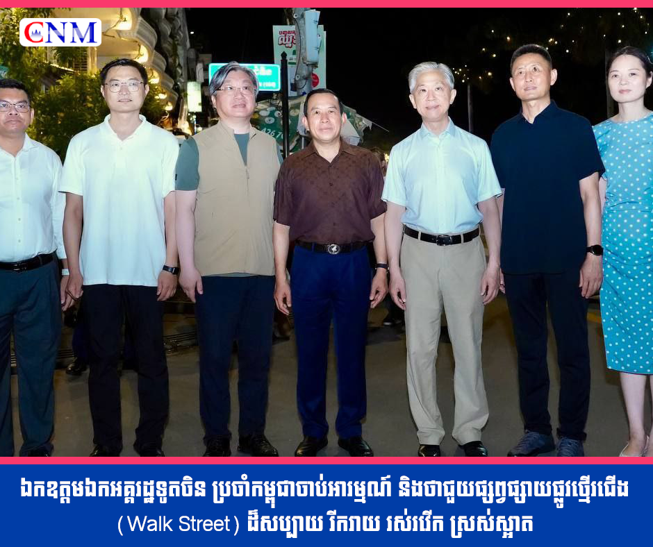 ឯកឧត្តមឯកអគ្គរដ្ឋទូតចិន ប្រចាំកម្ពុជាចាប់អារម្មណ៍ និងថាជួយផ្សព្វផ្សាយផ្លូវថ្មើរជើង (Walk Street) ដ៏សប្បាយ រីករាយ រស់រវើក ស្រស់ស្អាត