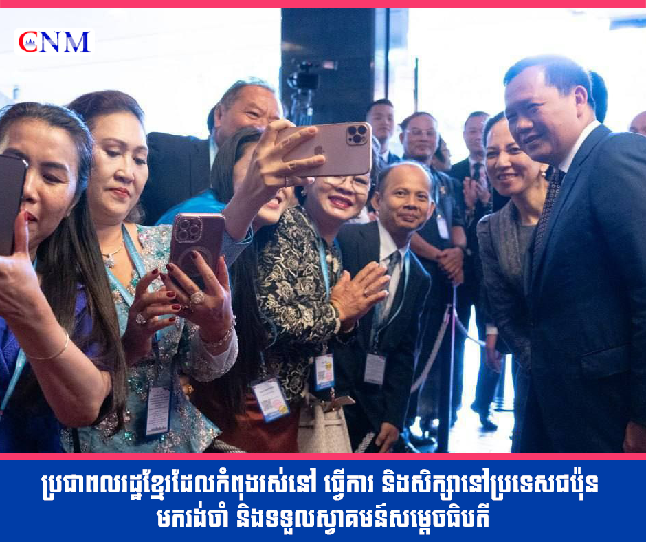 ប្រជាពលរដ្ឋខ្មែរដែលកំពុងរស់នៅ ធ្វើការ និងសិក្សានៅប្រទេសជប៉ុន យ៉ាងច្រើនកុះករបានមករង់ចាំ និងទទួលស្វាគមន៍យ៉ាងកក់ក្តៅ និងស្និទ្ធស្នាលបំផុត គណៈប្រតិភូរាជរដ្ឋាភិបាលកម្ពុជាដឹកនាំដោយសម្ដេចមហាបវរធិបតី ហ៊ុន ម៉ាណែត នាយករដ្ឋមន្រ្តីនៃព្រះរាជាណាចក្រកម្ពុជានិងលោកជំទាវបណ្ឌិតអញ្ជើញមកបំពេញទស្សនៈកិច្ចការងារផ្លូវការ...