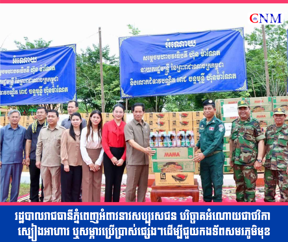 រដ្ឋបាលរាជធានីភ្នំពេញអំពាវនាវសប្បុរសជន បរិច្ចាគអំណោយជាថវិកា ស្បៀងអាហារ ឬសម្ភារប្រើប្រាស់ផ្សេងៗដើម្បីជួយកងទ័ពសមរភូមិមុខ