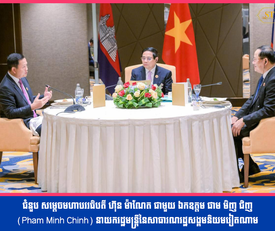 ជំនួប សម្តេចមហាបវរធិបតី ហ៊ុន ម៉ាណែត ជាមួយ ឯកឧត្តម ផាម មិញ ជិញ (Pham Minh Chinh) នាយករដ្ឋមន្រ្តីនៃសាធារណរដ្ឋសង្គមនិយមវៀតណាម និង ឯកឧត្តម សនសៃ ស៊ីផាន់ដន (Sonexay Siphandone)