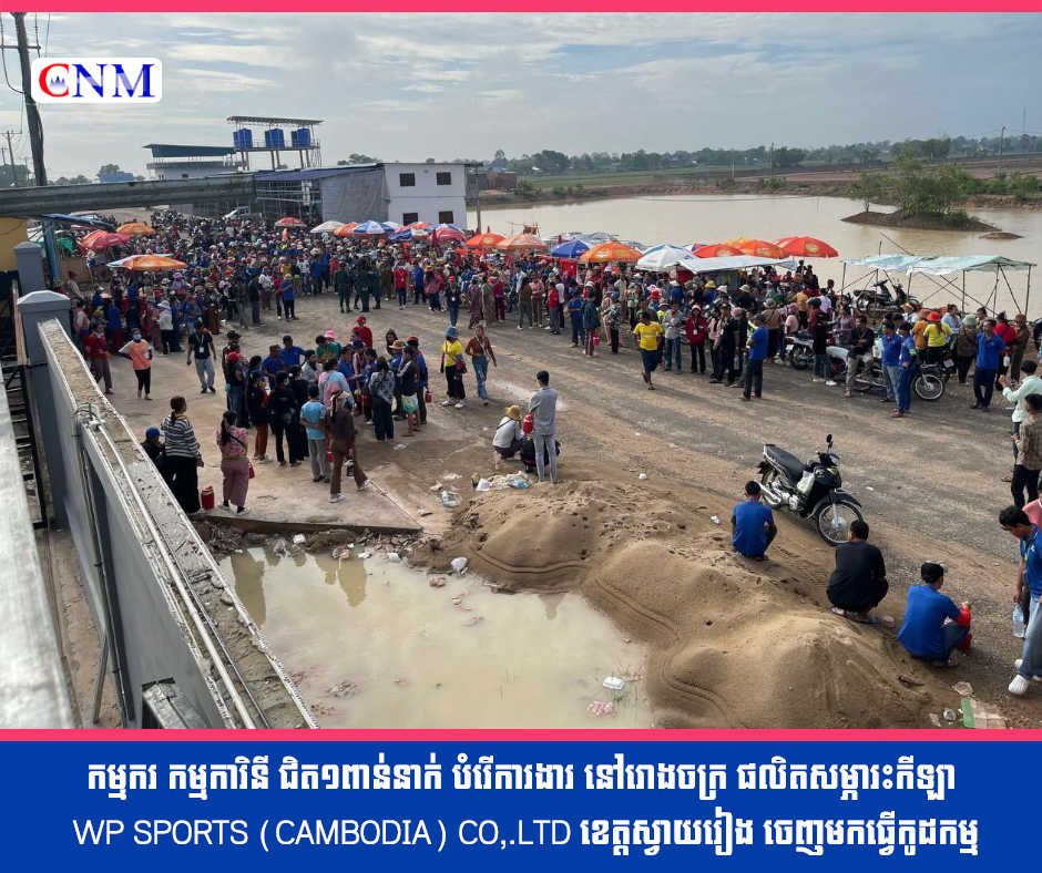 កម្មករ កម្មការិនី ជិត១ពាន់នាក់ បំរើការងារ នៅរោងចក្រ ផលិតសម្ភារះកីឡា WP SPORTS (CAMBODIA) CO,.LTD ខេត្តស្វាយរៀង ចេញមកធ្វើកូដកម្ម