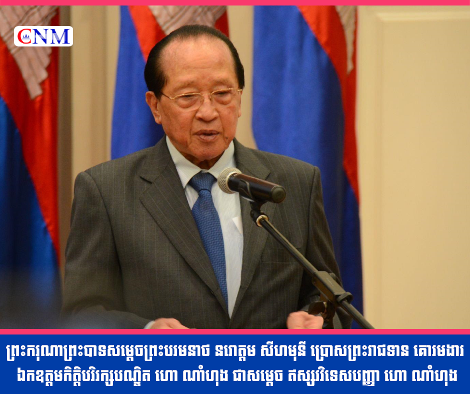 ព្រះករុណាព្រះបាទសម្តេចព្រះបរមនាថ នរោត្តម សីហមុនី ប្រោសព្រះរាជទាន គោរមងារ ឯកឧត្តមកិត្តិបរិរក្សបណ្ឌិត ហោ ណាំហុង ជាសម្តេច ឥស្សរវិទេសបញ្ញា ហោ ណាំហុង