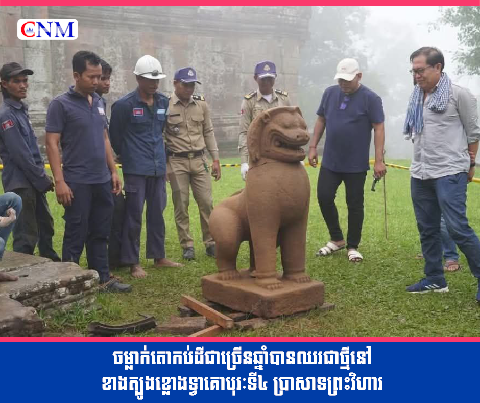 យោងតាមក្រសួងវប្បធម៌ និងវិចិត្រសិល្បះ បានឲ្យដឹងថាថ្មីៗនេះ មន្ត្រីជំនាញអាជ្ញាធរជាតិព្រះវិហារ ជាមួយអង្គភាពនគរបាលការពារបេតិកភណ្ឌប្រចាំប្រាសាទព្រះវិហារ បាន លើកចម្លាក់តោដែលត្រូវបានរកឃើញកបើក្នុងរណ្តៅកំណាយស្រាវជ្រាវរចនាសម្ព័ន្ធគ្រឹះគោបុរៈទី៤ ដែលអនុវត្តដោយនាយកដ្ឋានអភិរក្ស និងបុរាណវិទ្យា នៃអាជ្ញាធរជាតិព្រះវិហារ...