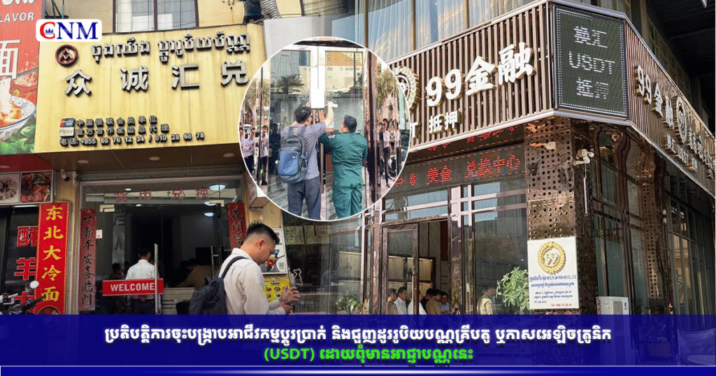 ប្រតិបត្តិការចុះបង្ក្រាបអាជីវកម្មប្ដូរប្រាក់ និងជួញដូររូបិយបណ្ណគ្រីបតូ ឬកាសអេឡិចត្រូនិក (USDT) ដោយពុំមានអាជ្ញាបណ្ណនេះ