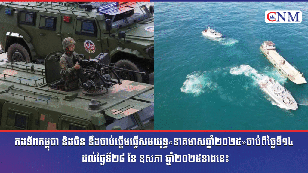 កងទ័ពកម្ពុជា និងចិន នឹងចាប់ផ្តើមធ្វើសមយុទ្ធ«នាគមាសឆ្នាំ២០២៥»ចាប់ពីថ្ងៃទី១៤ ដល់ថ្ងៃទី២៨ ខែ ឧសភា ឆ្នាំ២០២៥ខាងនេះ