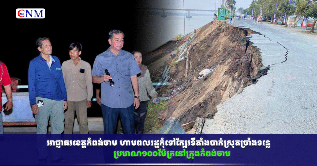 អាជ្ញាធរខេត្តកំពង់ចាម ហាមពលរដ្ឋកុំទៅក្បែរទីតាំងបាក់ស្រុតច្រាំងទន្លេ ប្រមាណ១០០ម៉ែត្រនៅក្រុងកំពង់ចាម