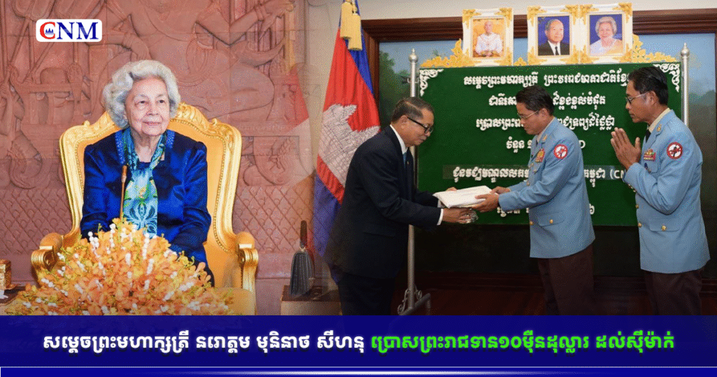 សម្តេចព្រះមហាក្សត្រី នរោត្តម មុនិនាថ សីហនុ ប្រោសព្រះរាជទាន១០ម៉ឺនដុល្លារ ដល់ស៊ីម៉ាក់