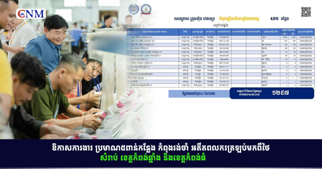 ឱកាសការងារ ប្រមាណ៥ពាន់កន្លែង កំពុងរង់ចាំ អតីតពលករត្រឡប់មកពីថៃ សំរាប់ ខេត្តកំពង់ឆ្នាំង និងខេត្តកំពង់ធំ