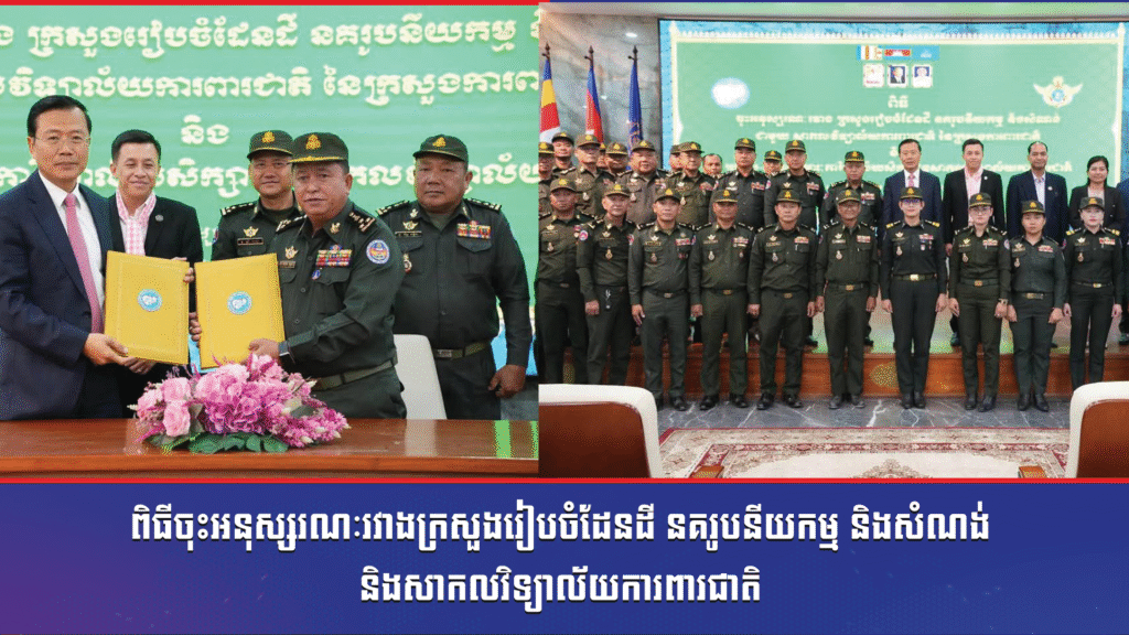 ពិធីចុះអនុស្សរណៈរវាងក្រសួងរៀបចំដែនដី នគរូបនីយកម្ម និងសំណង់ និងសាកលវិទ្យាល័យការពារជាតិ និងពិធីប្រគល់ -ទទួលសម្ភារៈការិយាល័យសិក្សា ជូនសាកលវិទ្យាល័យការពារជាតិ