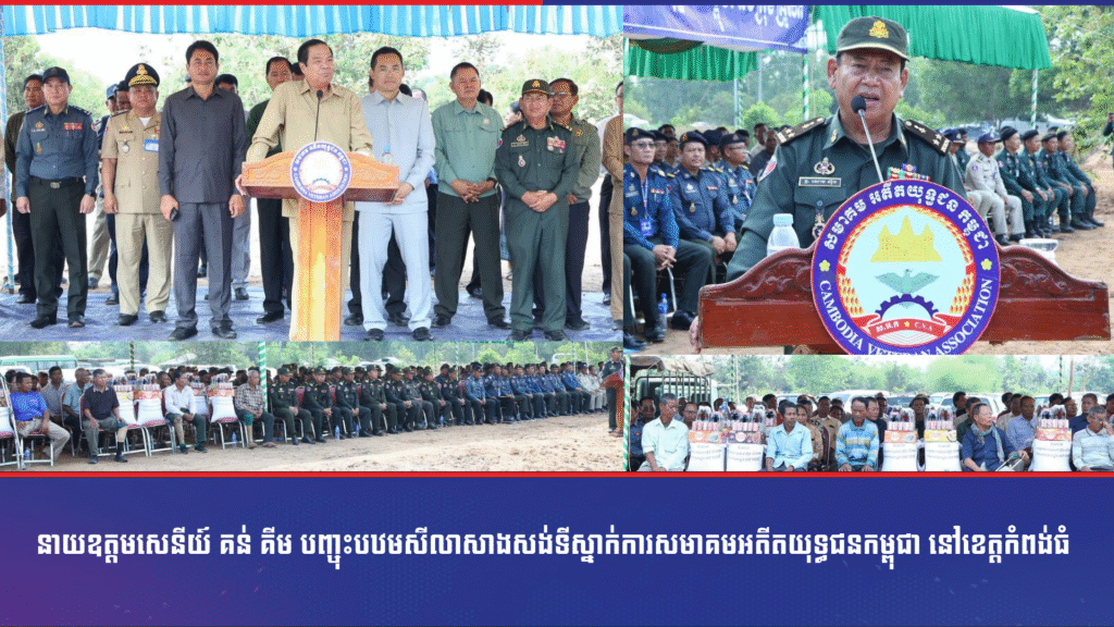 នាយឧត្តមសេនីយ៍ គន់ គីម បញ្ចុះបឋមសីលាសាងសង់ទីស្នាក់ការសមាគមអតីតយុទ្ធជនកម្ពុជា នៅខេត្តកំពង់ធំ