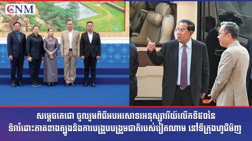 សម្តេចតេជោ ចូលរួមពិធីអបអរសាទរអនុស្សាវរីយ៍លើកទី៥០នៃទិវារំដោះភាគខាងត្បូងនិងការបង្រួបបង្រួមជាតិរបស់វៀតណាម នៅទីក្រុងហូជីមិញ