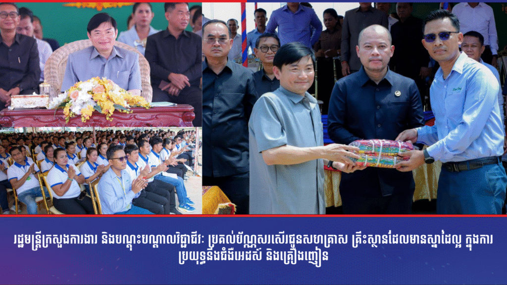រដ្ឋមន្រ្តីក្រសួងការងារ និងបណ្តុះបណ្តាលវិជ្ជាជីវៈ ប្រគល់ប័ណ្ណសរសើរជូនសហគ្រាស គ្រឹះស្ថានដែលមានស្នាដៃល្អ ក្នុងការប្រយុទ្ធនឹងជំងឺអេដស៍ និងគ្រឿងញៀន