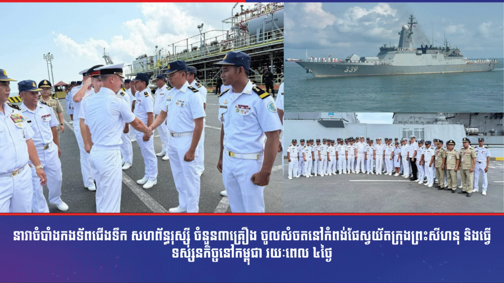 នាវាចំបាំងកងទ័ពជើងទឹកសហព័ន្ធរុស្ស៊ី ចំនួន៣គ្រឿង ចូលសំចតនៅកំពង់ផែស្វយ័តក្រុងព្រះសីហនុ និងធ្វើទស្សនកិច្ចនៅកម្ពុជា រយៈពេល ៤ថ្ងៃ