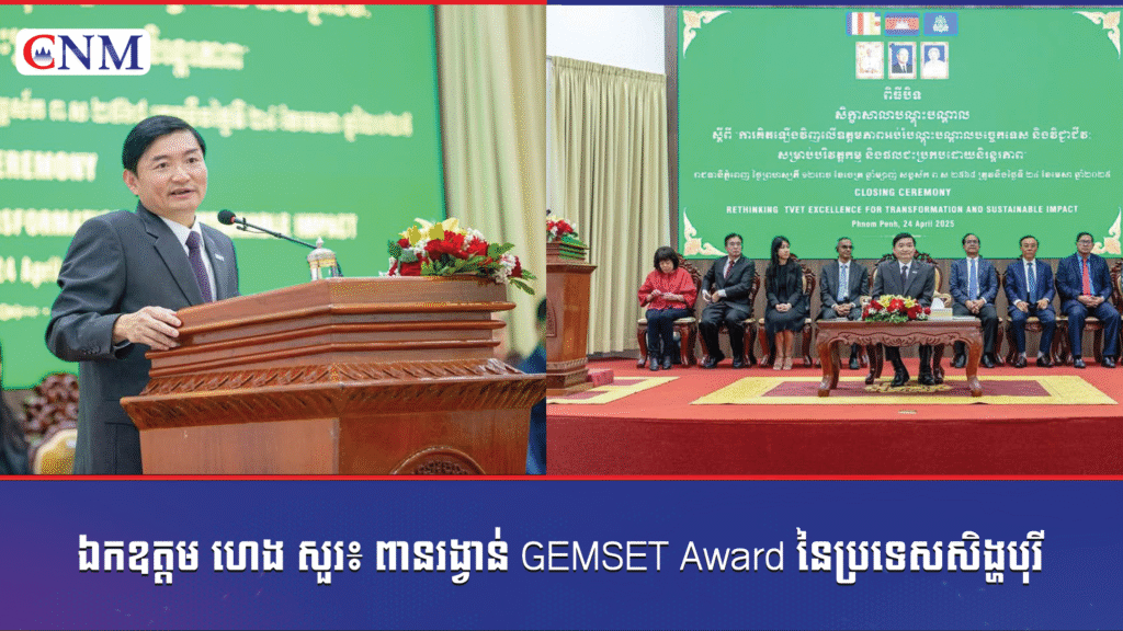 ឯកឧត្តម ហេង សួរ៖ ពានរង្វាន់ GEMSET Award នៃប្រទេសសិង្ហបុរី ដែលវិទ្យាស្ថាន TVET ទទួលបាន គឺឆ្លុះបញ្ចាំងការរីកចម្រើននៃវិស័យ TVET នៅកម្ពុជា