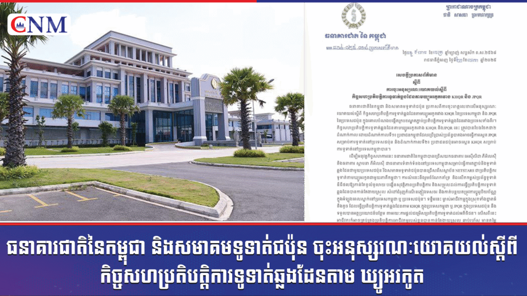 ធនាគារជាតិនៃកម្ពុជា និងសមាគមទូទាត់ជប៉ុន ចុះអនុស្សរណៈយោគយល់ស្តីពីកិច្ចសហប្រតិបត្តិការទូទាត់ឆ្លងដែនតាម ឃ្យូអរកូត រវាង KHOR នៃប្រទេសកម្ពុជា និង JPOR នៃប្រទេសជប៉ុន