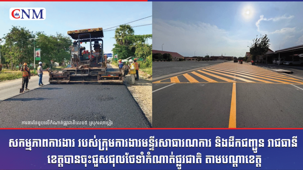 សកម្មភាពការងារ របស់ក្រុមការងារមន្ទីរសាធារណការ និងដឹកជញ្ជូន រាជធានី -ខេត្តបានចុះជួសជុលថែទាំកំណាត់ផ្លូវជាតិ តាមបណ្ដាខេត្ត