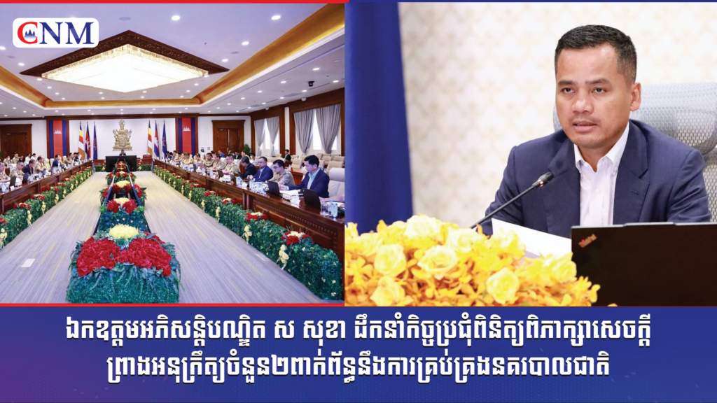 ឯកឧត្តមអភិសន្តិបណ្ឌិត ស សុខា ដឹកនាំកិច្ចប្រជុំពិនិត្យពិភាក្សាសេចក្ដីព្រាងអនុក្រឹត្យចំនួន២ពាក់ព័ន្ធនឹងការគ្រប់គ្រងនគរបាលជាតិ